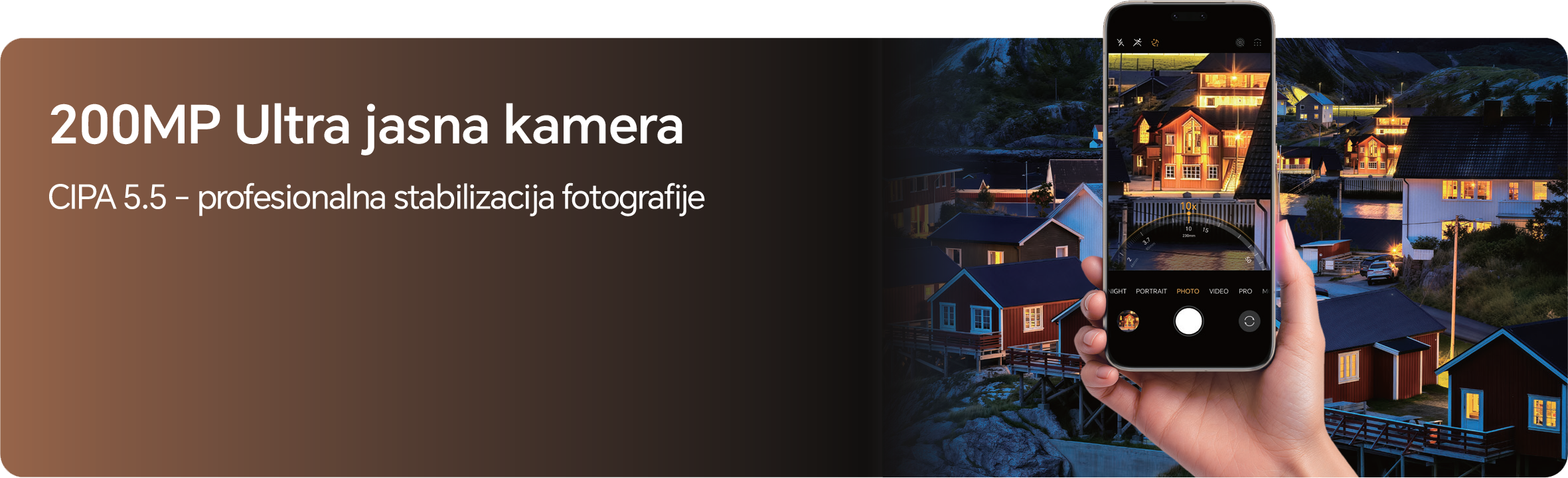 Revolucionarna 200MP Ultra Noćna Kamera Zabilježite neviđene detalje čak i u najtamnijim uvjetima. Sustav kamera predvodi 200 MP periskopska telefoto kamera s 3.7x optičkim i 100x digitalnim zoomom, uz 50 MP glavnu kameru s promjenjivim otvorom blende. Zahvaljujući AIMAGE Ultra Night Engine tehnologiji i CIPA 5.5 stabilizaciji, vaše noćne fotografije i portreti bit će kristalno jasni, bez podrhtavanja.