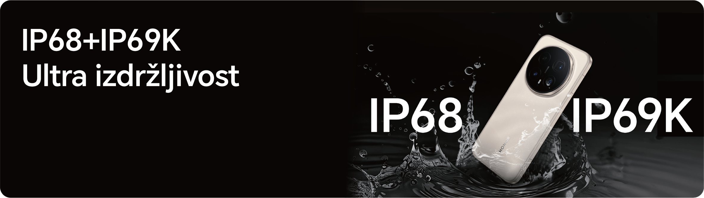 Izdržljivost Bez Kompromisa (IP68 + IP69K) Dizajniran za sve uvjete. Uz IP68 i IP69K certifikate, Magic8 Pro otporan je na prašinu, uranjanje u vodu, pa čak i mlazove vode pod visokim pritiskom. Zaslon je zaštićen HONOR NanoCrystal Shieldom koji pruža vrhunsku otpornost na ogrebotine i padove.